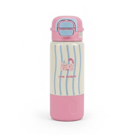 تراول ماگ دوحالته طرح سگ و گربه با دو درب جداگانه، نی و لبی آساننوش، جنس استیل ۳۰۶ دوجداره، دارای بند، قفل ضامندار و زیره سیلیکونی. مناسب نگهداری نوشیدنیهای سرد و گرم.